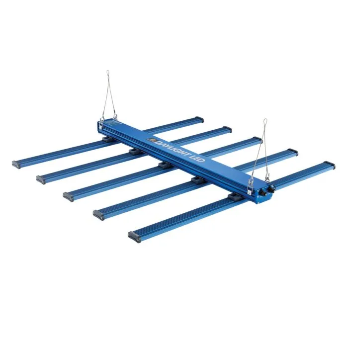 The DAYLIGHT 480W LED boasts a full spectrum of light with a fixture efficiency of 2.3 μmol/J and a total output of 1104 μmol/s. This is all made possible by 5 bars of high-quality Osram and Lumileds LED chips, covering a 1.2m x 1.2m area perfectly, with outstandingly uniform light coverage. All of this bundled up into a slimline and lightweight design. In addition to its new slimline design, the DAYLIGHT 480W LED has new and improved clip-on bars, making one person assembly a breeze.